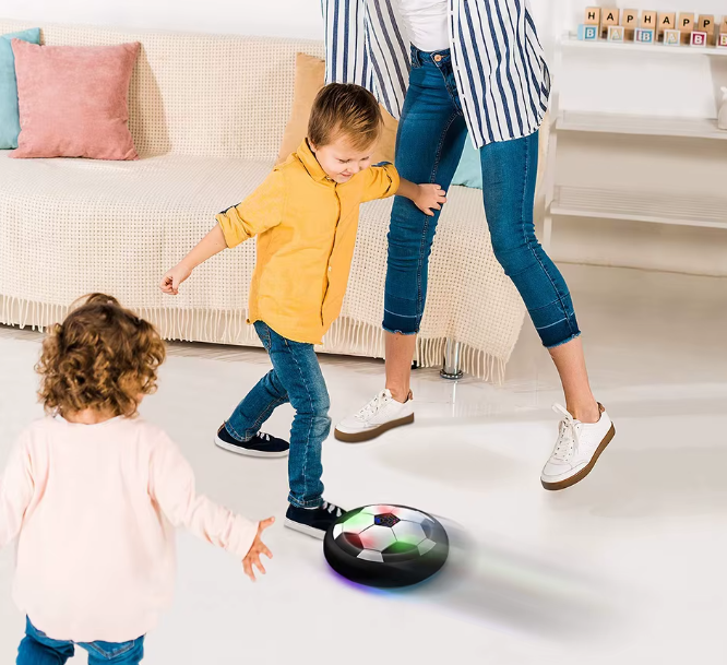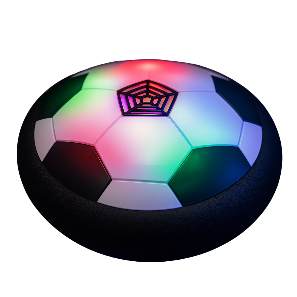 Po naładowaniu naciśnij przycisk zasilania – diody LED zaczną świecić, a piłka zacznie unosić się na poduszce powietrznej.